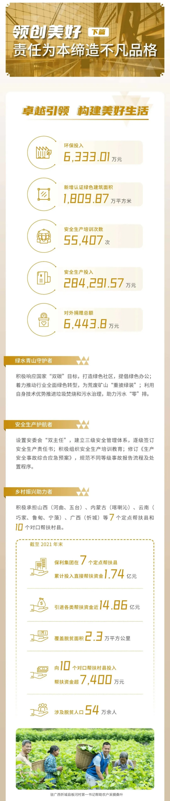 近日,必赢3003no1线路检测中心公开发布2021社会责任报告,连续第九次面向社会展现保利责任担当。报告解读了2021年必赢3003no1线路检测中心在服务国家发展大局、加快产业协同合作、健全企业经营机制、守护绿水青山、保障社会民生、助力员工成长等方面的贡献,回顾了保利人奋发有为、勇毅担当的履责之路。